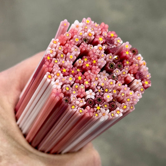 TINY Pink Fire 1oz coe 90 Flower Murrini TINY RODS